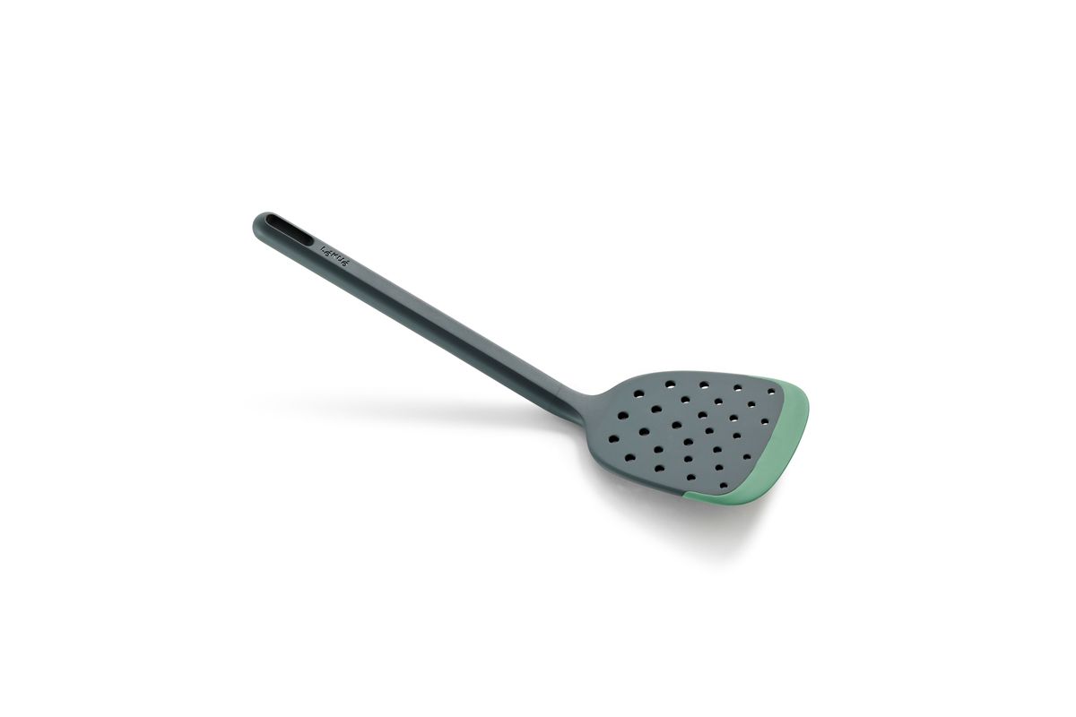 La espátula ranurada de Lékué combina ligereza y precisión para cocinar sin rayar tus utensilios. Hecha con silicona resistente y flexible, soporta altas temperaturas y ofrece un agarre cómodo. Perfecta para saltear, servir o voltear alimentos con facilidad, es una herramienta indispensable para una cocina práctica y moderna. Lékué revoluciona la cocina con utensilios de silicona premium que combinan diseño, funcionalidad y sostenibilidad. Sus productos facilitan una cocina más saludable, práctica y moderna. Innovación y calidad al servicio de quienes disfrutan cocinar con estilo.